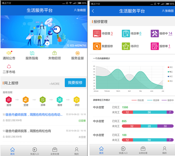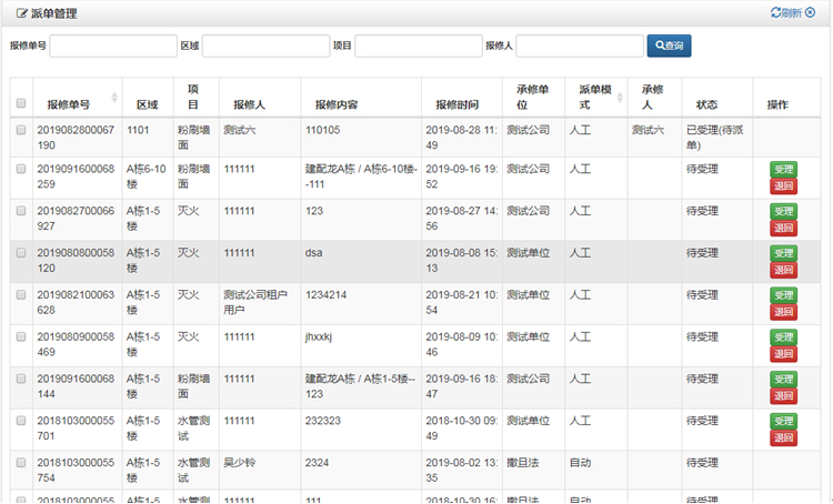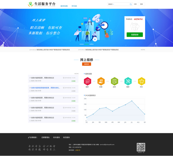 提供報修、受理、派單、維修、評價全過程的管理服務平臺;