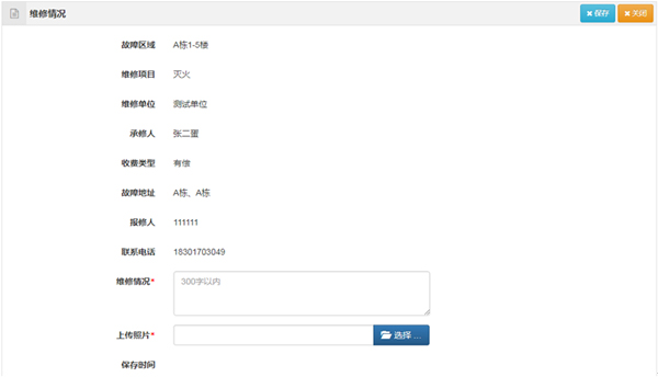 維修分:無償、有償,管理員可設置維修區(qū)域、維修項目的收費類型,未設置的默認為無償。用戶報修時可以看到是免費維修還是收費維修。收費維修時,維修完成后可錄入收費情況。