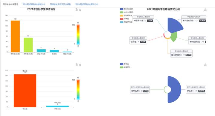 國際學生招生錄取管理:1、該模塊管理員可以發(fā)布報名批次,設置可報名院系、專業(yè)、學制、學習期限、授課語言、項目類別(本科生、碩士研究生、博士研究生、普通進修生、高級進修生、語言生等)、獎學金類別(中國政府獎學金、孔子學院獎學金等);2、學生可以在報名批次發(fā)布后通過郵箱在線注冊、申請;3、管理單位、院系、導師等可以在線審核學生的申請,并可以一鍵導出學生所有上傳附件;4、管理員可以批量導出學生的申請信息、批量選擇字段導出所有學生的匯總信息;5、審核、錄取之后,管理員可以批量導出學生的錄取通知書,導出JW201表和JW202表;6、管理員同時還可以批量發(fā)送面試邀約給學生;7、管理員可以在中介管理子模塊給中介授權,被授權的中介可以同時發(fā)起多個申請;8、管理員可以對當前年度以及歷年的報名、錄取學生進行匯總統(tǒng)計、導出。