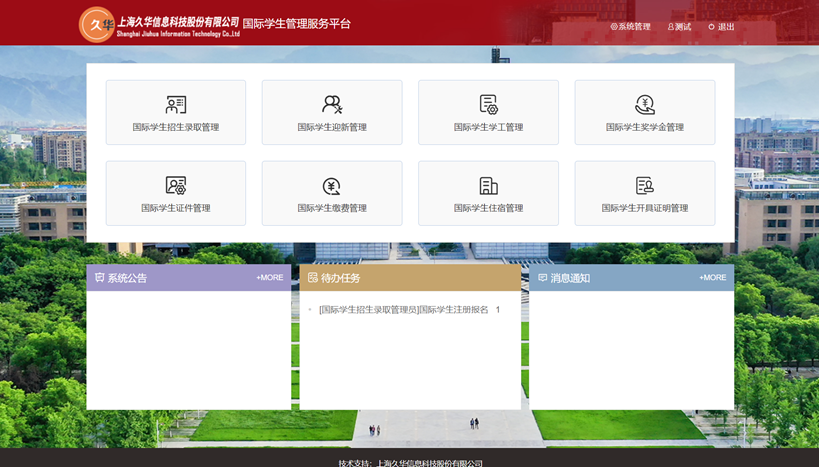 國際學生開具證明管理:1、學生可以在系統(tǒng)內申請開具證明,例如在校表現證明、在讀證明等;2、各單位審核通過之后,管理員可以在系統(tǒng)內下載相關證明,并通知學生前來領取。